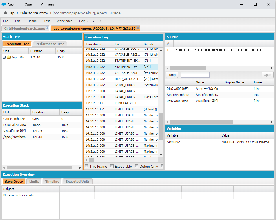 : 대체적으로, Salesforce 개발 중에 발생하는 에러 등, 로그 확인 및 디버깅은 개발자 콘솔에서 이루어진다.