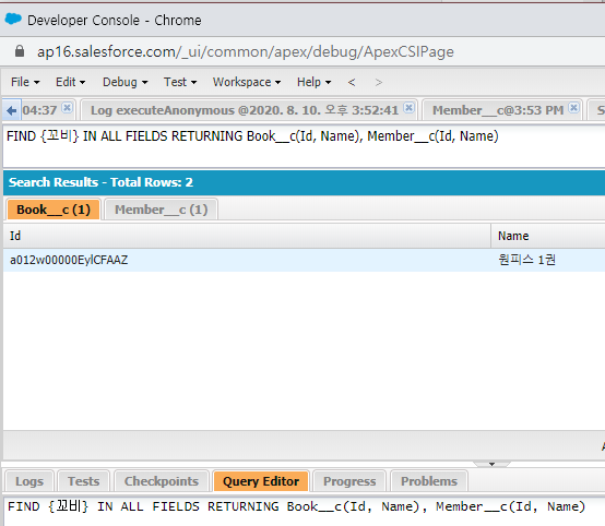 FIND {꼬비} IN ALL FIELDS RETURNING Book__c(Id, Name), Member__c(Id, Name)