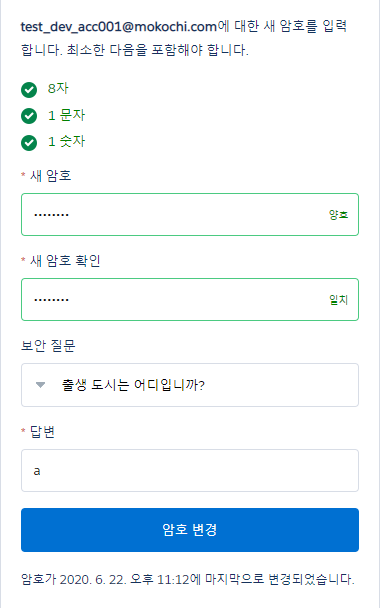 여기서 비밀 번호를 설정한 후, [암호 변경] 버튼을 눌러주세요.