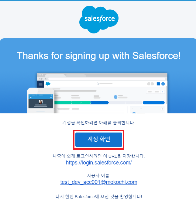 이것으로 Salesforce의 개발용 무료 계정 등록이 완료되었습니다.