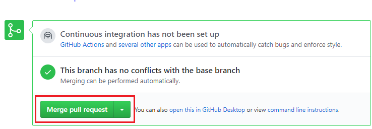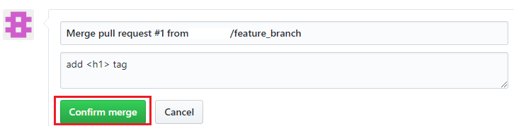 위 화면에서, "Merge pull request"버튼을 눌러줍니다.